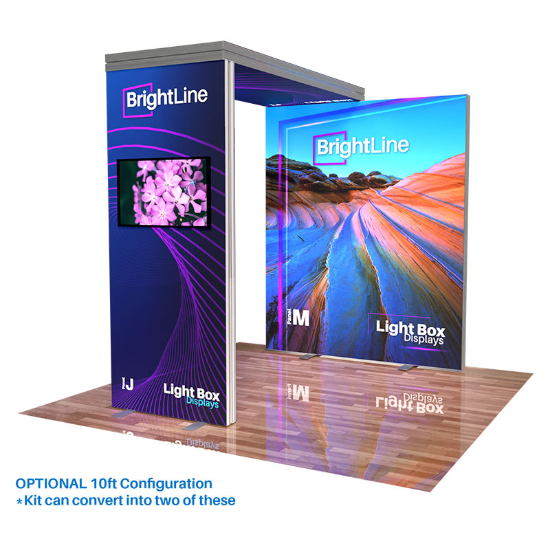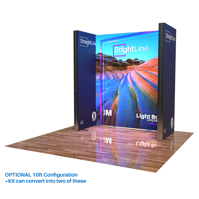 Our Island Booth Kits harness the synergy of StraightLine displays and BrightLine lightboxes, creating impressive and dynamic exhibitions. With a 360-degree exposure, these 20ft-by-20ft configurations entice visitors with eye-catching graphics printed on 100% recycled One Planet fabric. Kits are bundled with hardware, graphics, connectors, TV mounts and extension cables. Each panel is packed in within molded-foam inserts in a heavy-duty shipping case.