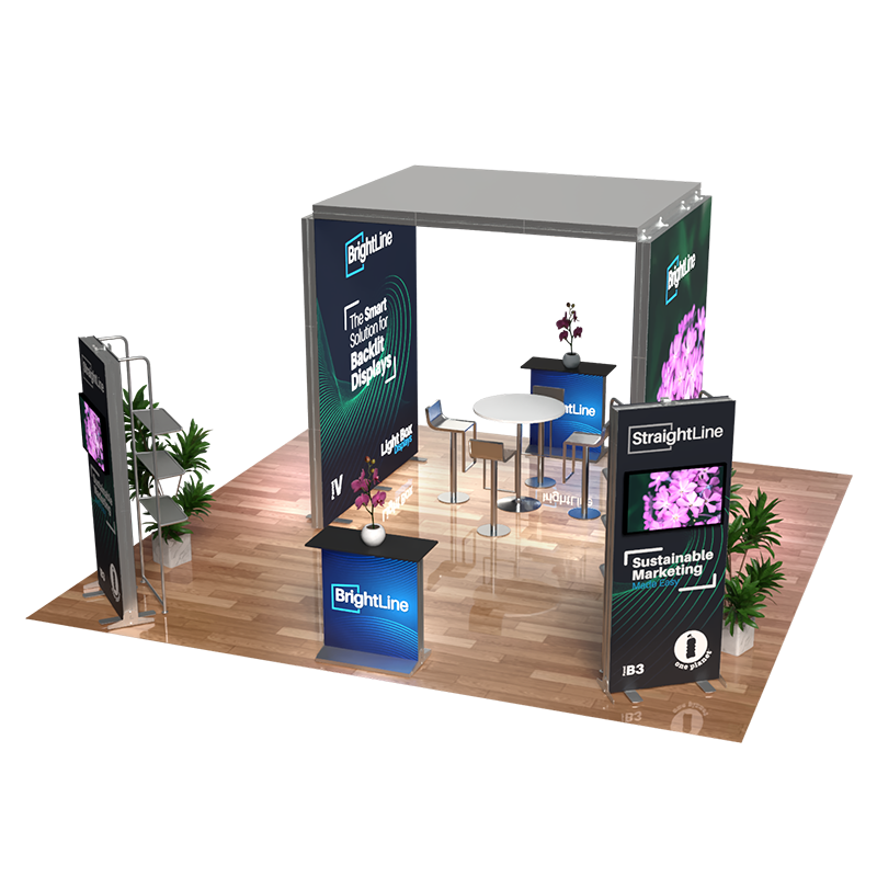 Our Island Booth Kits harness the synergy of StraightLine displays and BrightLine lightboxes, creating impressive and dynamic exhibitions. With a 360-degree exposure, these 20ft-by-20ft configurations entice visitors with eye-catching graphics printed on 100% recycled One Planet fabric. Kits are bundled with hardware, graphics, connectors, TV mounts and extension cables. Each panel is packed in within molded-foam inserts in a heavy-duty shipping case.