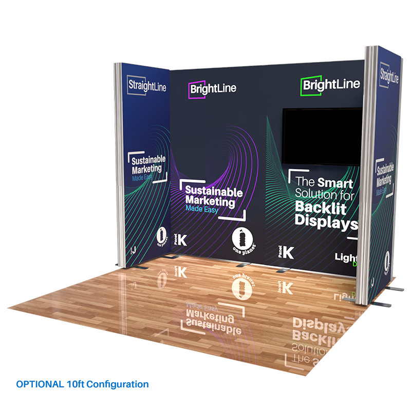 Our Island Booth Kits harness the synergy of StraightLine displays and BrightLine lightboxes, creating impressive and dynamic exhibitions. With a 360-degree exposure, these 20ft-by-20ft configurations entice visitors with eye-catching graphics printed on 100% recycled One Planet fabric. Kits are bundled with hardware, graphics, connectors, TV mounts and extension cables. Each panel is packed in within molded-foam inserts in a heavy-duty shipping case.