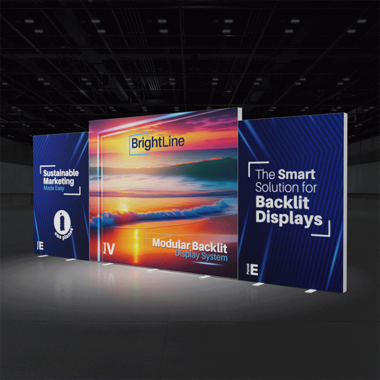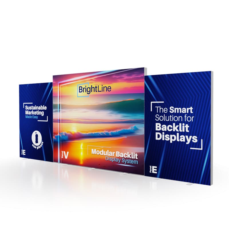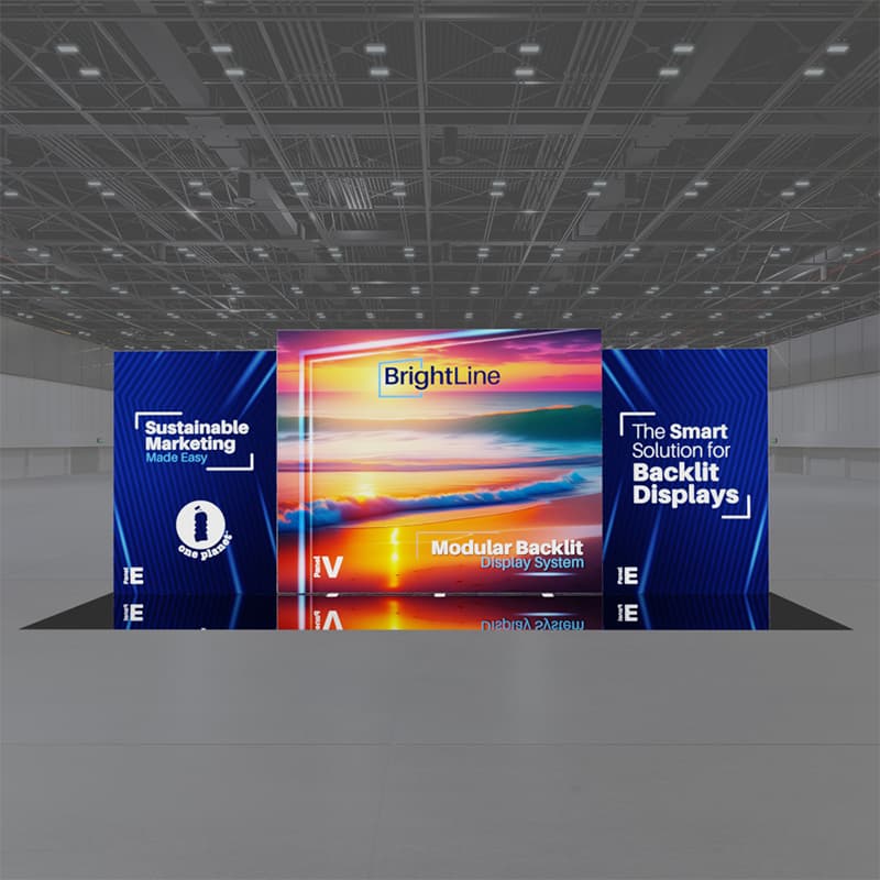BrightLine Kits engage audiences with illuminated displays combining shapes and styles to create captivating exhibits. Kits include hardware, graphics, connectors, and extension cables to reach a single power source location. Each panel is packed in a custom-foamed shipping case. With a multi-level look, the 20-EVE kit allows for three messaging areas that combine in an impressive 20ft backlit ensemble. This convertible booth turns into two exquisite 10ft displays. Elevate the branding experience with double-sided graphics, or adding accessories like TV mounts, counters, and shelving. Panels can also be replaced with matching options from WaveLine and StraightLine display systems, contact our team for details.