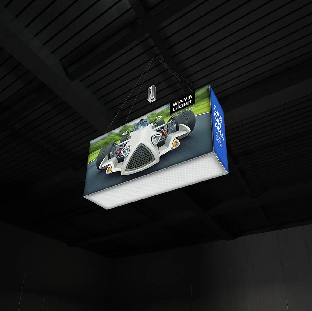 Breathe new light into your brand, exhibit, event or retail shop with the WaveLight® Casonara Blimp Cube Hanging Light Box Displays. This pioneering new SEG tension fabric light box is designed to make backlit graphics more portable, modular and customizable. Our 360º illumination technology provides more visibility for your brand and more places to present your ideas. We have also color coded the frames which provides our users the ability to quickly assemble and disassemble the display without tools ––or breaking a sweat.